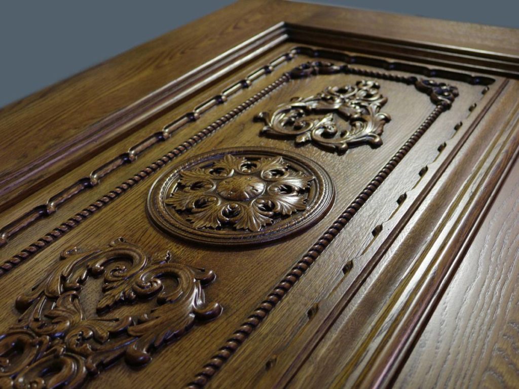 Для наполнения филенчатых створок преимущественно используется клееный брус. Он отличается хорошей устойчивостью к деформациям, поэтому изделия обладают оптимальными эксплуатационными характеристиками. Устанавливать уличные модели можно на входе в дом или квартиру.