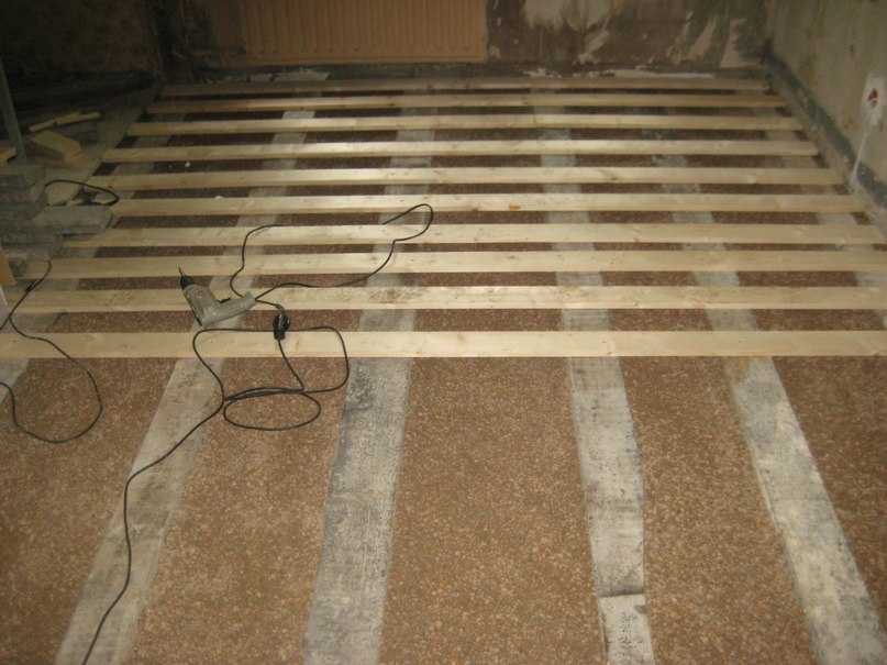 - Лаги или основание пола должны быть строго горизонтальными и выровненными по уровню.