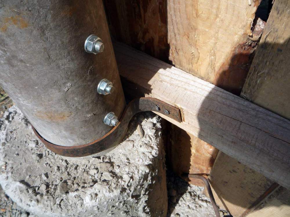 Их можно положить просто на столб. Так вы осуществите крепление быстро, но надежность способа невысока.