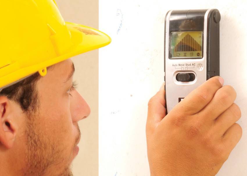 Этот прибор часто называют металлоискателем. Он применяется для определения наличия металла в толще земли на глубине около одного метра. Если в стенах нет металлической арматуры, ничего не мешает воспользоваться металлоискателем для поиска проводки.