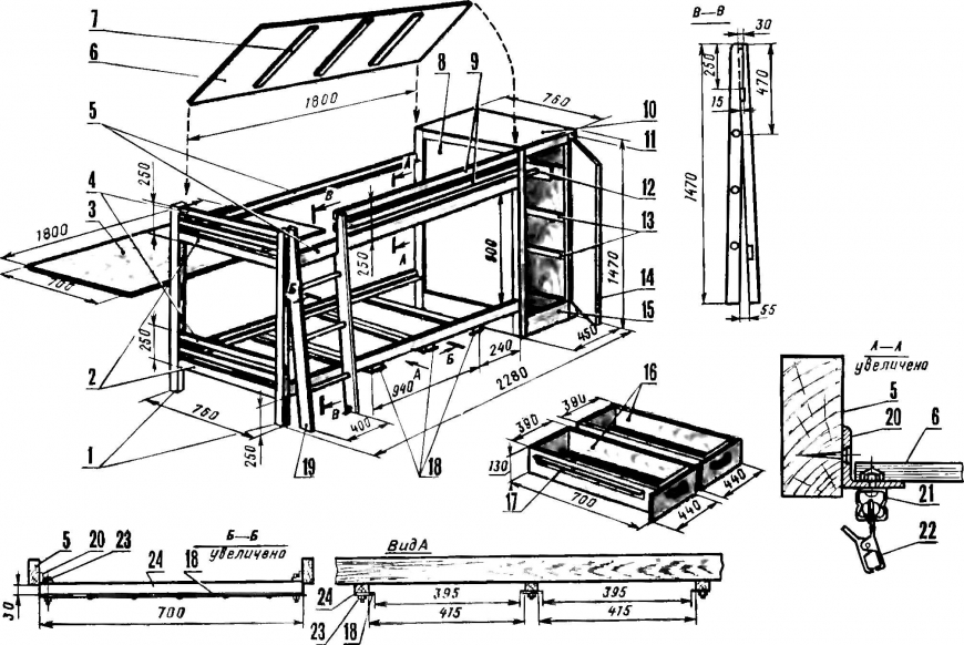 Двухъярусная кровать своими руками: чертежи и схемы с размерами