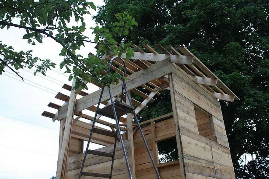 Детский домик из поддонов почти готов – осталось вставить окна и покрасить его.