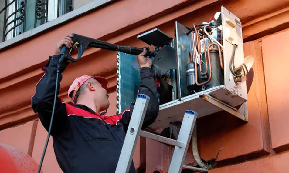 Не пытайтесь заниматься чисткой наружного блока самостоятельно, если он установлен на высоте. Вызывайте специалистов, возможно даже промышленных альпинистов.