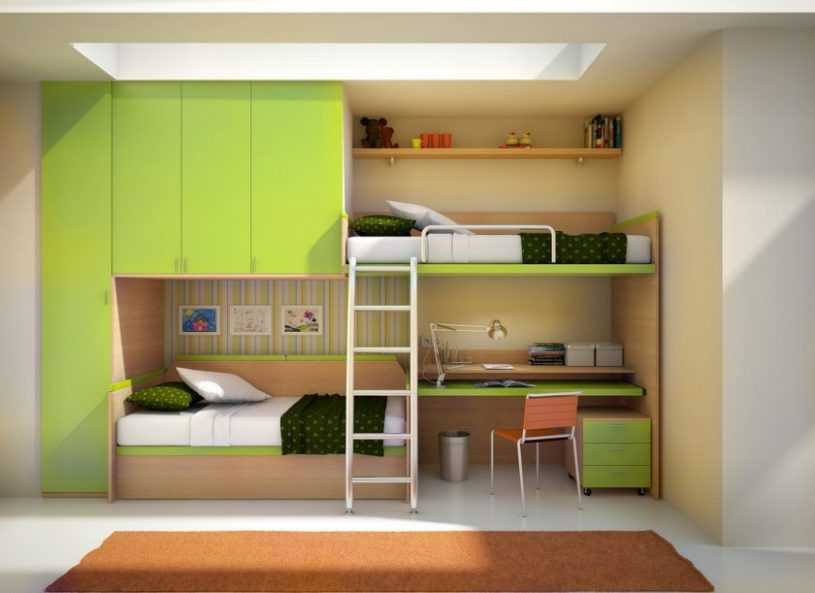 Особенно важной деталь обстановки детской комнаты для двоих разнополых детей является мебель. Для помещения площадь менее 14 кв. м