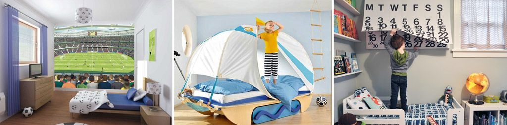 Мальчишки бывают, как известно, настоящими сорванцами и отъявленными фантазерами. Детская комната для мальчика – простое, функциональное помещение, готовое к быстрому преображению. Интересы их разнообразны, следовательно, разработку дизайна правильней начать с обсуждения увлечений самого хозяина. Бессмысленно навязывать будущему мужчине свои интересы, вкусы. Если он автолюбитель, то морская тематика в дизайне не устроит его, имитация корабельной каюты просто разочарует.