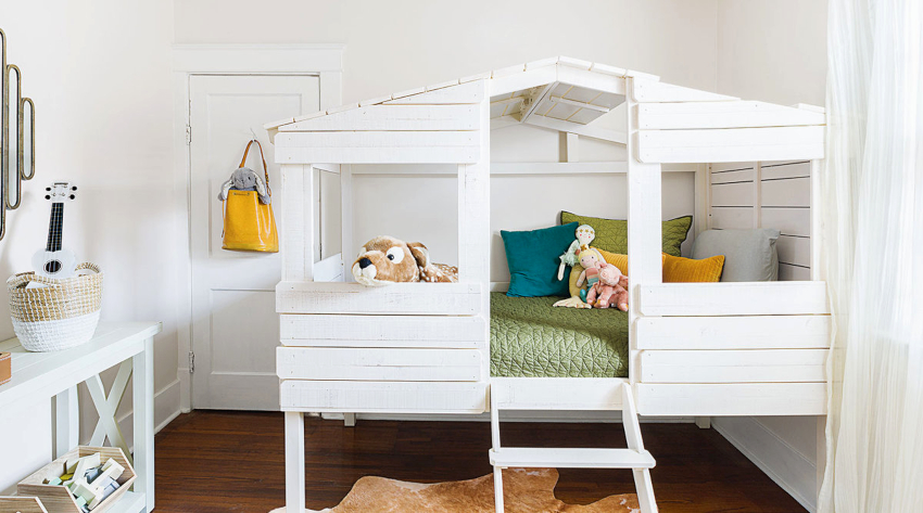 Настоящим спасением станет трансформирующаяся мебель, которая поможет стильно и функционально наполнить интерьер любой маленькой детской. Рассмотри модели кроватей, которые в сложенном состоянии прячутся в шкаф или превращаются в стол. Сейчас на мебельном рынке можно найти все что угодно или сделать под заказ.