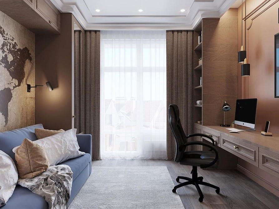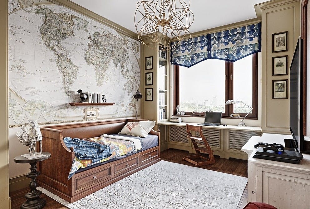 Принято думать, что пространство для тинэйджера — это современный интерьер, многоцветность и даже «хардкор». Но неоклассика и классика — отличный вариант, когда хочется соблюсти единый стиль для всей квартиры. Но скажем сразу: подойдёт такое далеко не всем детям.