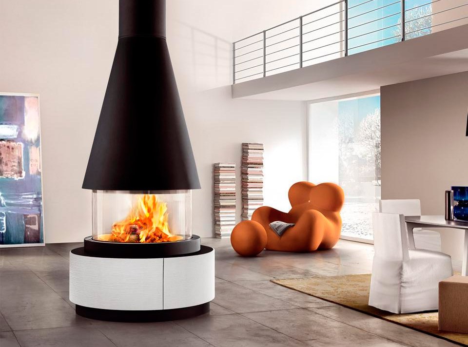 Камины данного типа устанавливаются только в просторных помещениях, имеющих крепкие полы