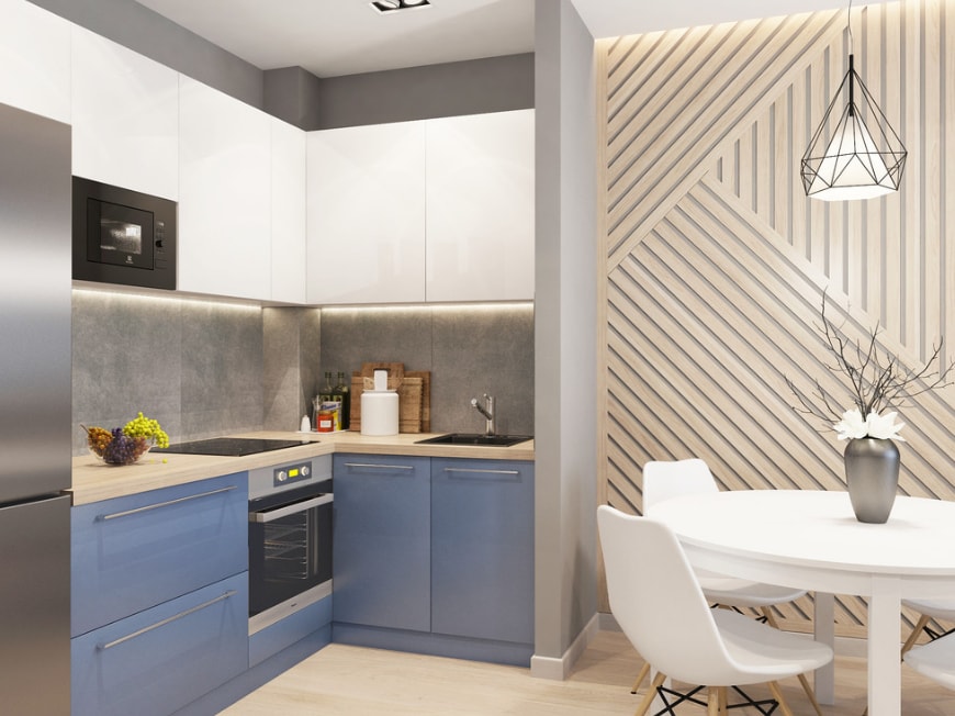 Это может быть система по принципу «шкаф-купе», когда выезжающая дверь полностью скрывает кухню и столешницу или дверцы, закрывающиеся по принципу ширмы. Вариаций множество.