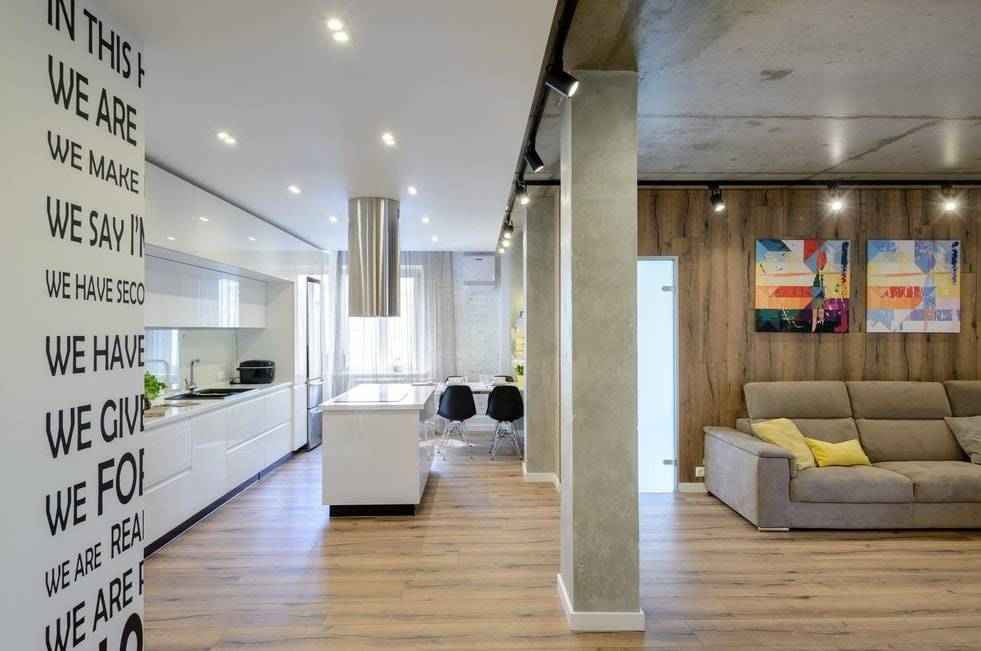 Дизайн кухни-студии, объединенной с гостиной: расставляем световые акценты