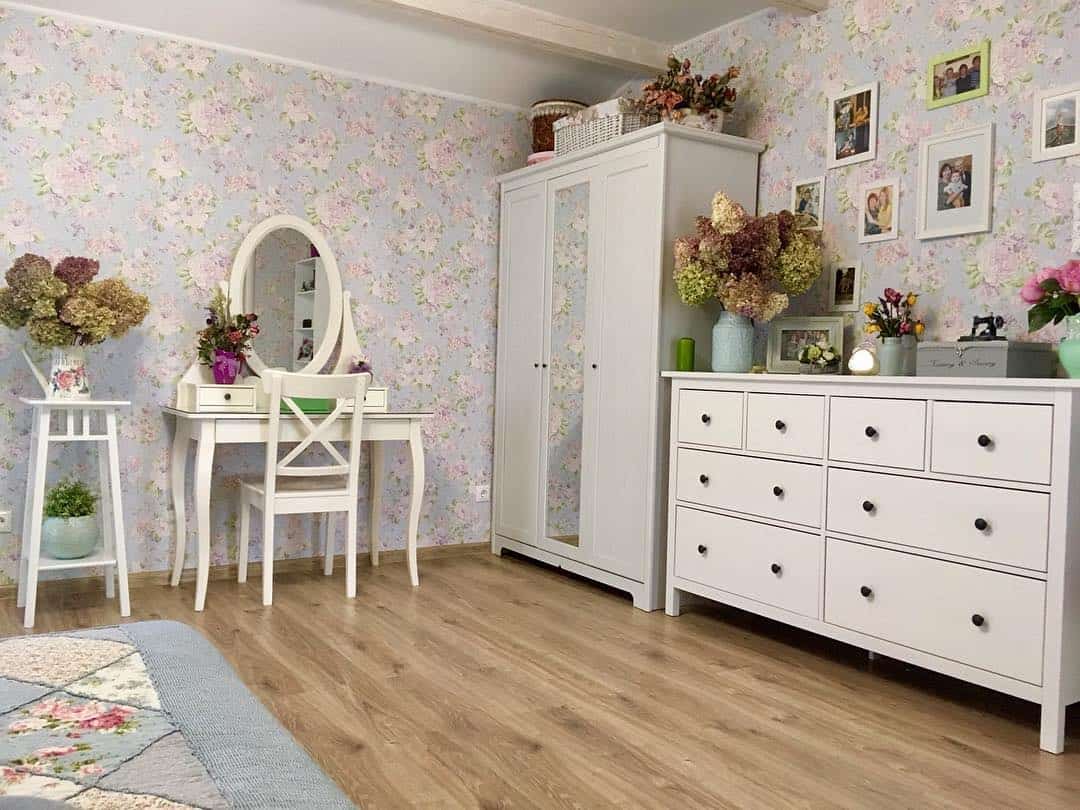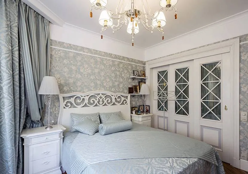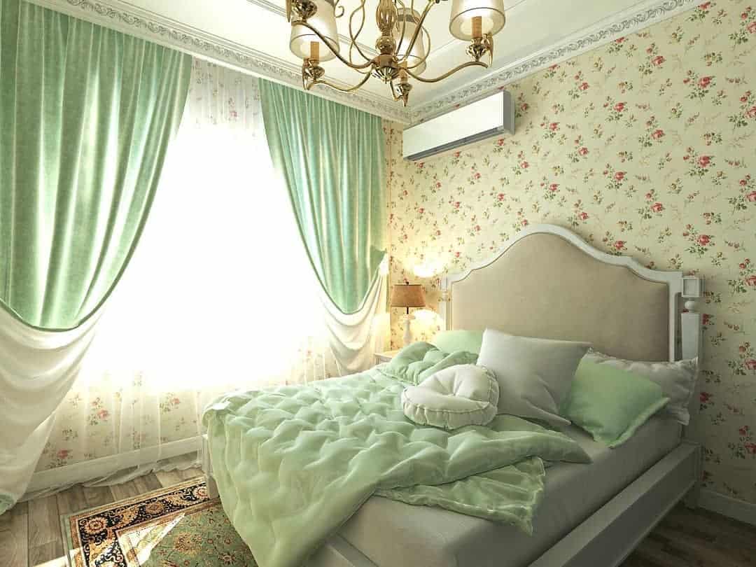 Спальни в хрущевке маленькие, и оформление их в стиле прованс нужно тщательно продумать. Стены можно оклеить обоями с изображением цветов, листьев. Если комната узкая, их лучше просто побелить. Это позволит визуально расширить пространство.