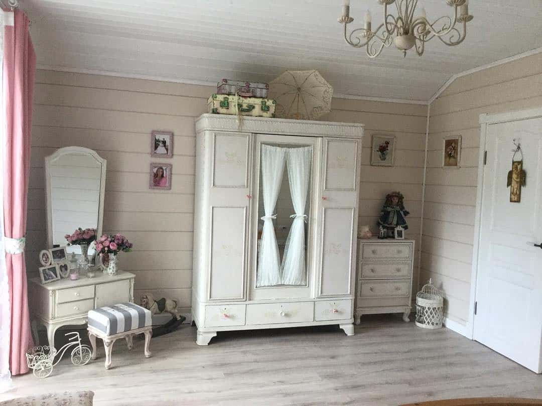 Стиль шебби-шик это разновидность прованса. Дословно он переводится как потертый шик, так как основной акцент в интерьере делается на старинную мебель. Изначально это направление пользовалось спросом среди бедного населения, и при его оформлении не существовало никаких правил.
