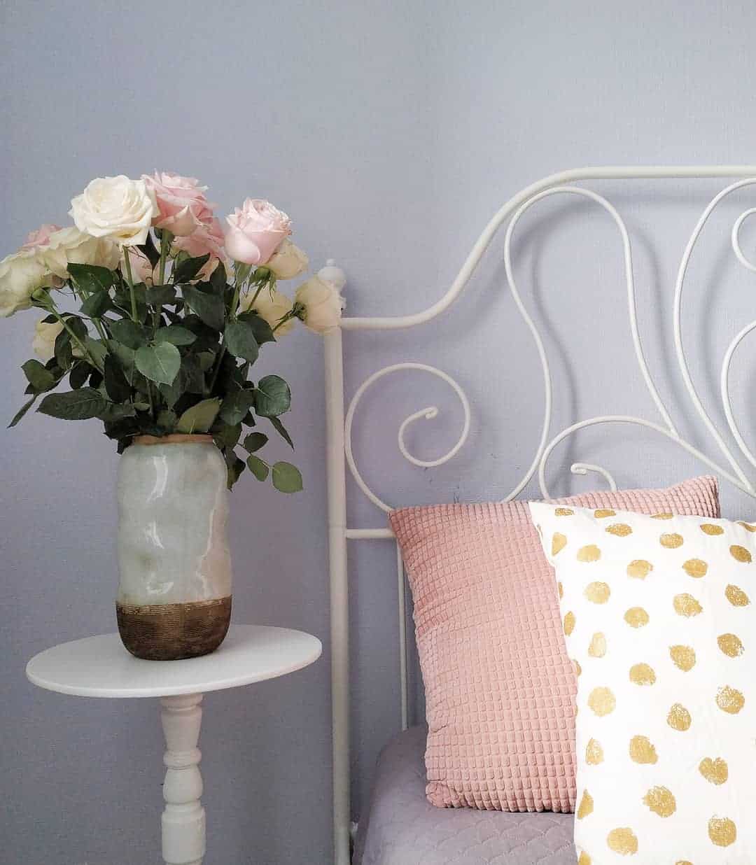 Если поместить в такой спальне большое зеркало, она будет казаться более просторной, потому что оно будет отражать все предметы в помещении и подарит ему аромат свежести.