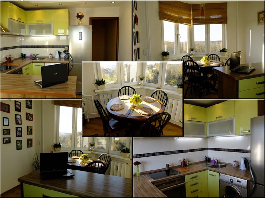 Доступный каждому способ размещения предусматривает расположение гарнитура Г-образно или параллельно. При этом для столовой группы остается достаточно места вдоль окна.