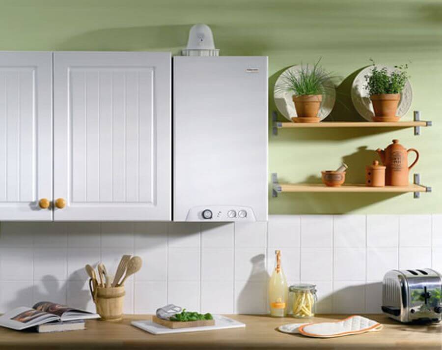 Стандартные газовые колонки белые, в большинстве случаев они отлично гармонируют с белой плитой и холодильником. А что делать, если они черные, с металлическим отливом или вообще красные? Целесообразно спрятать газовую колонку в кухонный шкаф, тогда она уж точно не будет выделяться.
