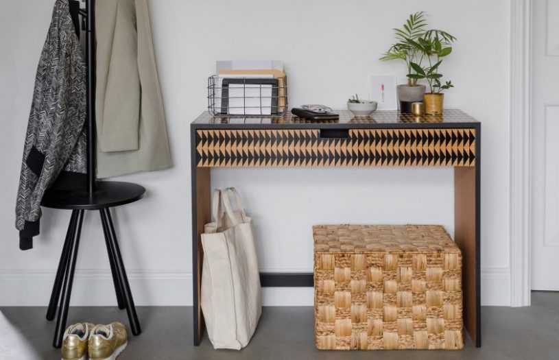 В маленькой угловой прихожей используйте соответствующую мебель, которая выглядит аккуратно, но позволяет хранить все самое необходимое в несправедливо кажущейся бесполезной угловой зоне.