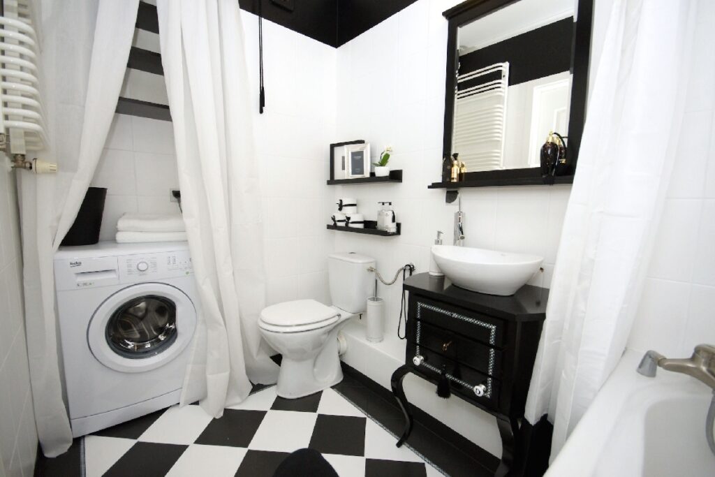 - Решить, необходима стиральная машина в ванной или техника может быть вынесена на кухню.