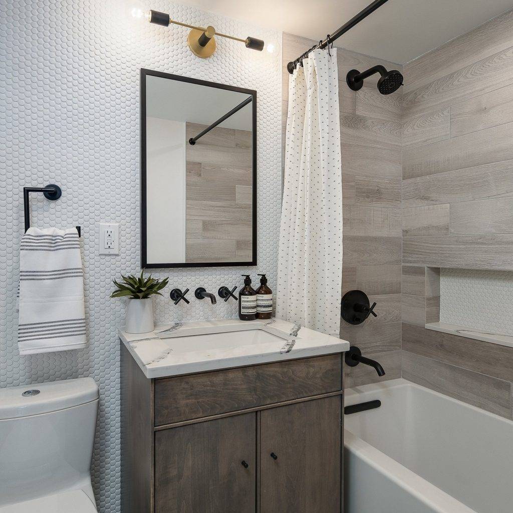 Одна вещь, которую вы действительно хорошо иметь в маленькой ванной комнате, это скрытое место для хранения. Один из способов его получить — добавить зеркальный шкаф. Зеркальные шкафы также очень дешевы, поэтому они отлично подходят для небольшой ванной.