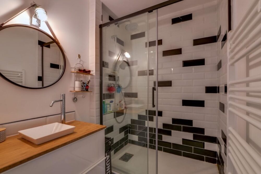 Это не означает, что вы должны исключить небольшие плитки. Если вы влюбились в некоторые красивые мозаики, вы можете немного смешать их, используя плитки разного размера в разных зонах, причем меньшие плитки могут быть ограничены зоной душа.