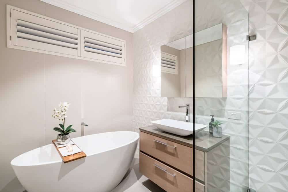 Использование небольших плиток, таких как мозаика, даст вам много линий затирки, которые могут придать стенам ванной комнаты сетчатый вид, который может способствовать ощущению того, что вы находитесь в коробке, что сделает ванную еще меньше.