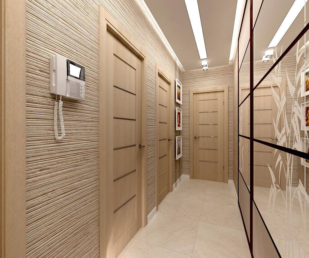 Узкие коридоры обязательно должны быть хорошо освещены. Пространство длиной до 3-х метров может обойтись одним центральным потолочным светильником. Если же комната длиннее 3,5 метров, тогда она делится на несколько зон, на границах которых устанавливаются дополнительные светильники.