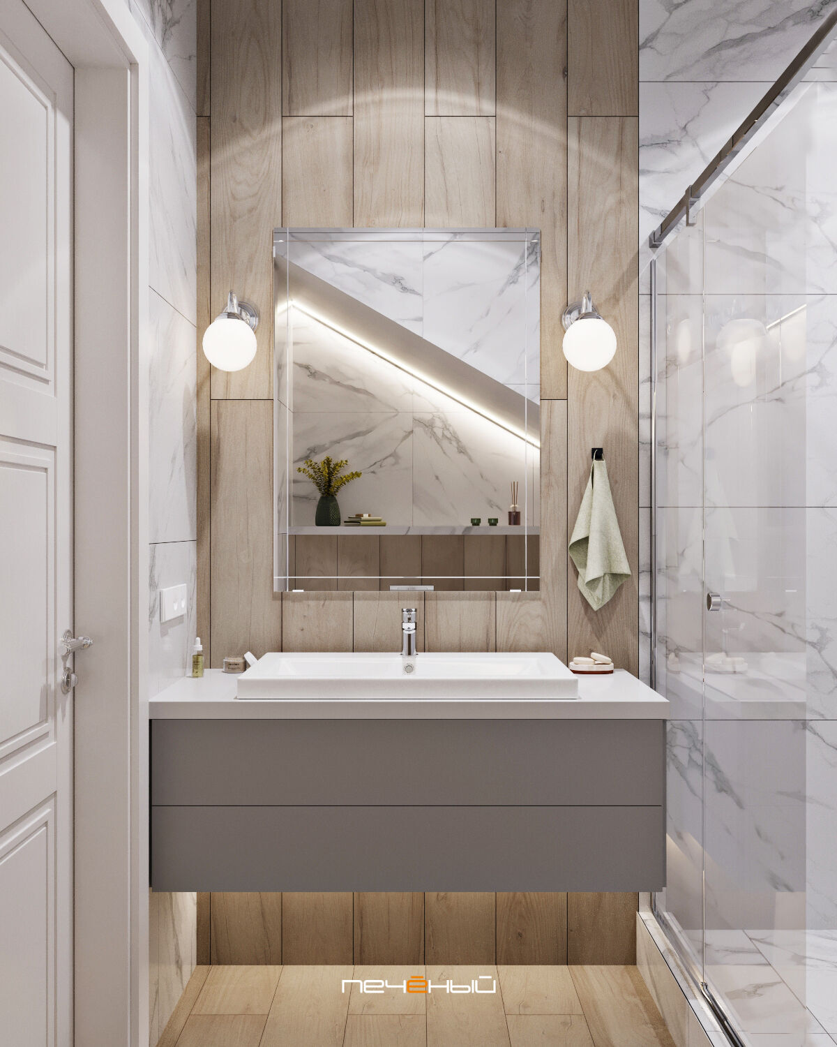 Вообще если разложить дизайн совмещенных ванных на составляющие, вопрос становится довольно простым. Для стильного дизайна достаточно: