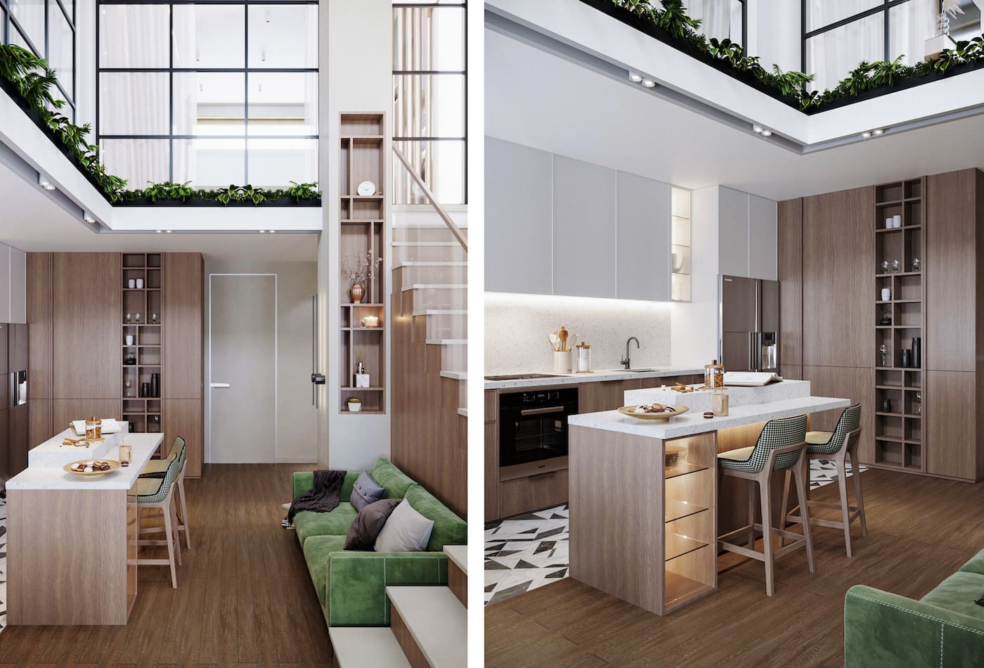 Кроме того, они будут развиваться на активных текстурах камня, дерева, мрамора, глины или керамики. Поскольку эти цвета холодные, лучше использовать их экономно. В качестве основного элемента палитры (например, для стен, кухонной мебели и т.д.) их следует использовать в помещениях с большими окнами, где достаточно солнечного света. Если естественного освещения мало и помещение небольшое, в качестве основы следует использовать нейтральный цвет с теплым оттенком.