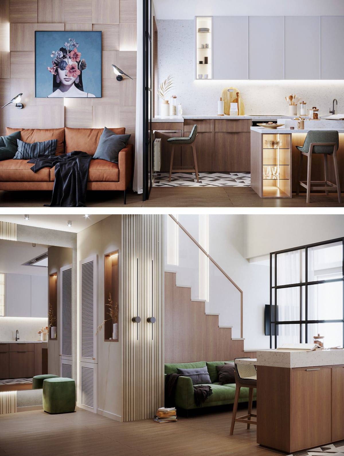 Вы можете играть с ними, сочетая их в разных пропорциях и не боясь ошибиться — все они хорошо сочетаются между собой и подходят для любой комнаты, от спальни до прихожей. Чтобы эта гамма не выглядела скучно и плоско, можно разбавить ее 1-2 более светлыми оттенками, чтобы создать акценты, выделить зоны или подчеркнуть определенные элементы.