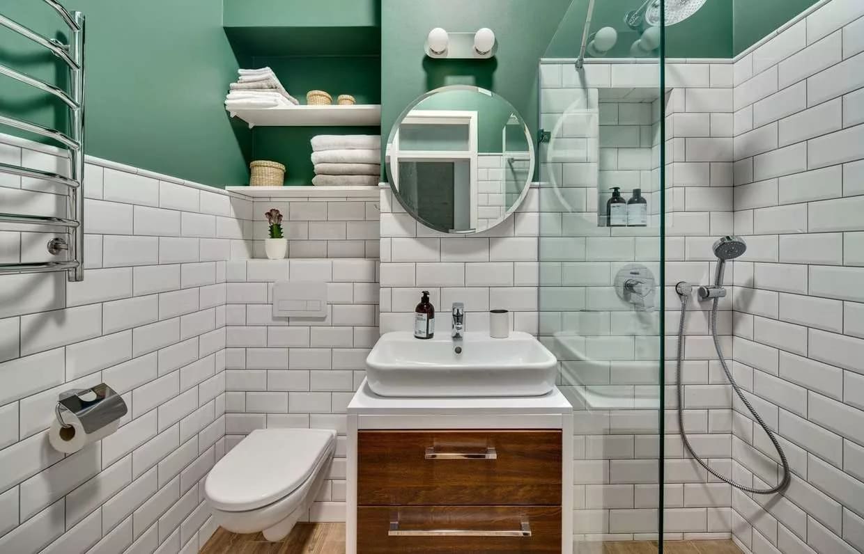 Откажитесь от кафеля слишком ярких цветов и крупноформатной плитки. И то, и другое может сыграть злую шутку и зрительно «съесть» место.