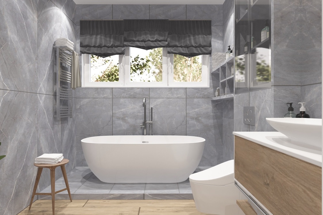 Дадим очевидный совет: не экономьте на материалах для общей ванной комнаты. Качество материалов для ванной всегда имеет большое значение из-за технических характеристик помещения. А в комбинированной крыше нагрузка на комнату увеличивается вдвое.