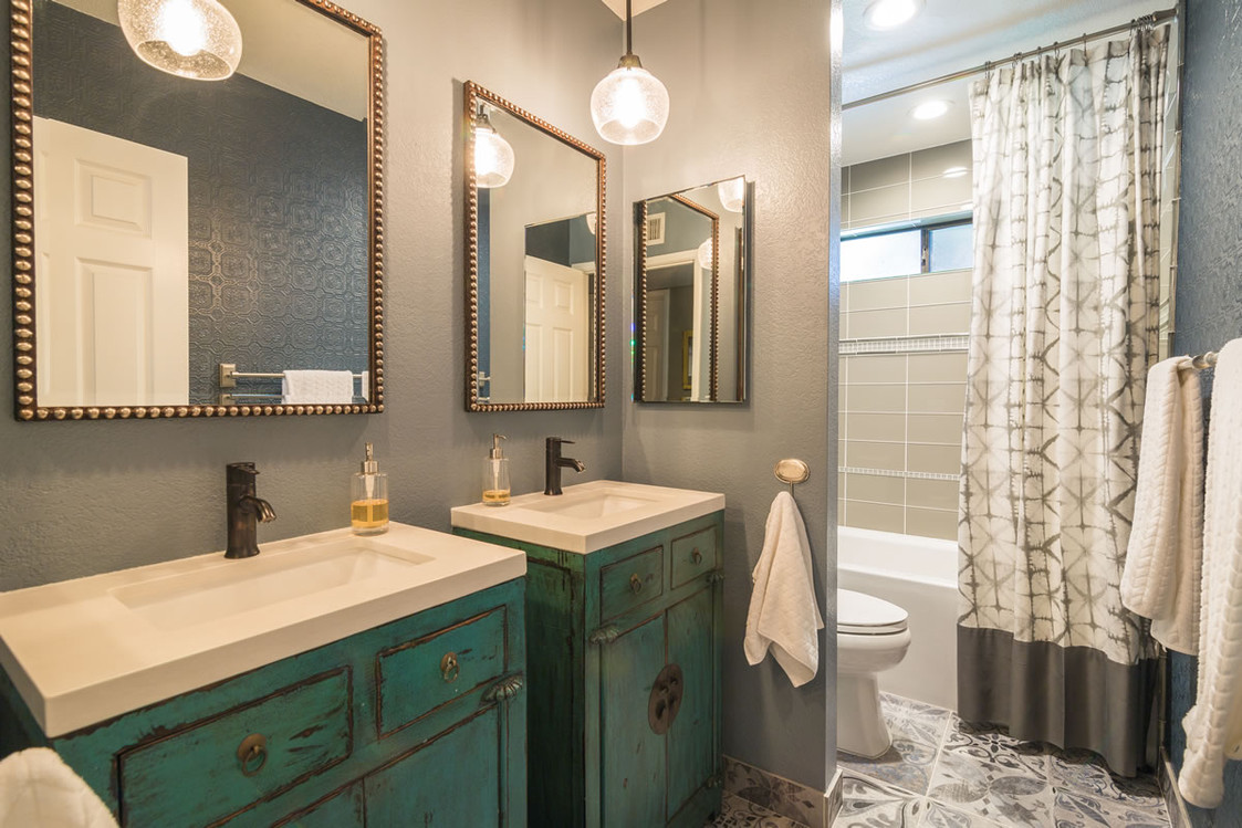 Оформляя ванную комнату в таком стиле, вы можете дать свободу своему воображению. Для дизайна вы можете использовать не только новейшие материалы, но и прежние компоненты декора.