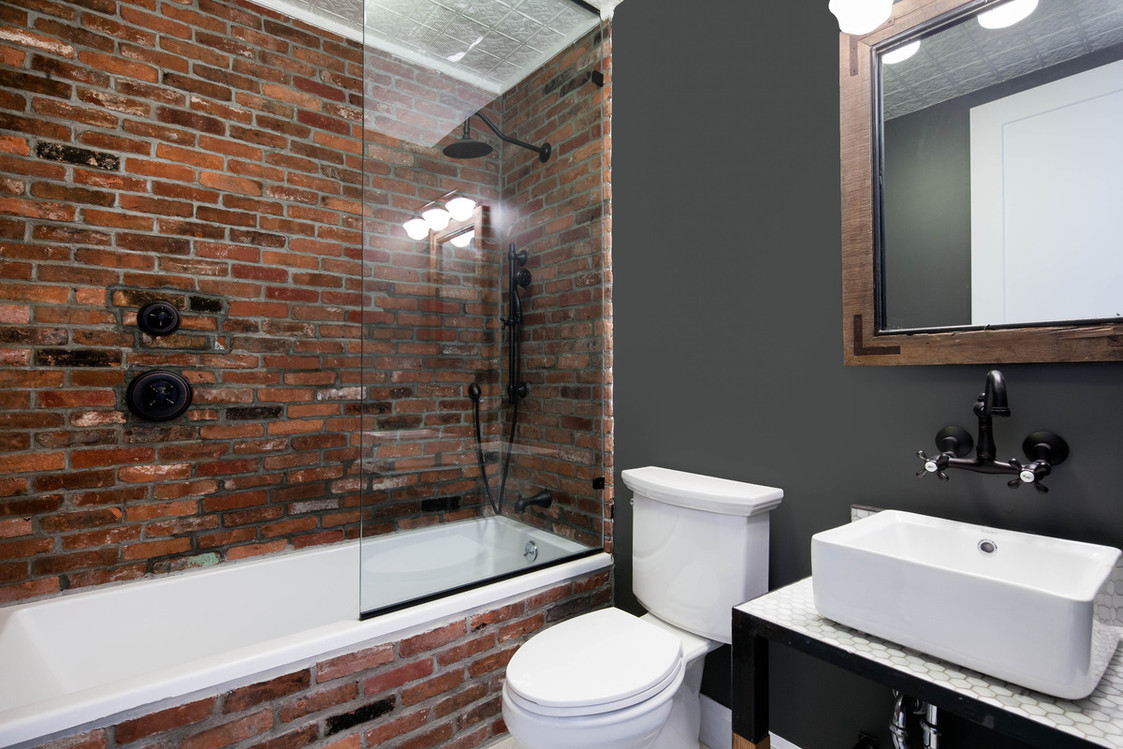 Лофт уже стал привычным при оформлении студий, но мало у кого ассоциируется с санузлом. На самом деле, это очень оригинальное решение.