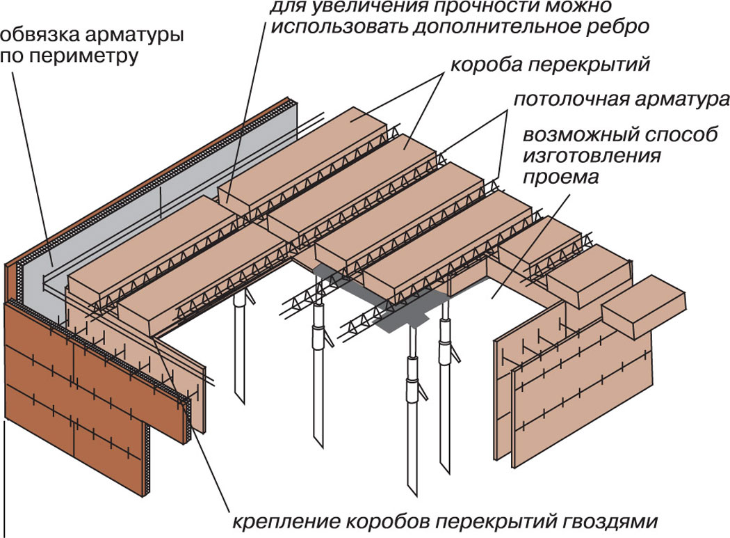 | В случае с бетонными междуэтажными перекрытиями выстраивается специальная опалубка. | |