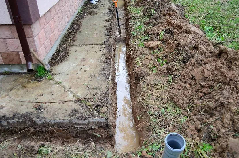 - Прокладка траншей под дренажный трубопровод.