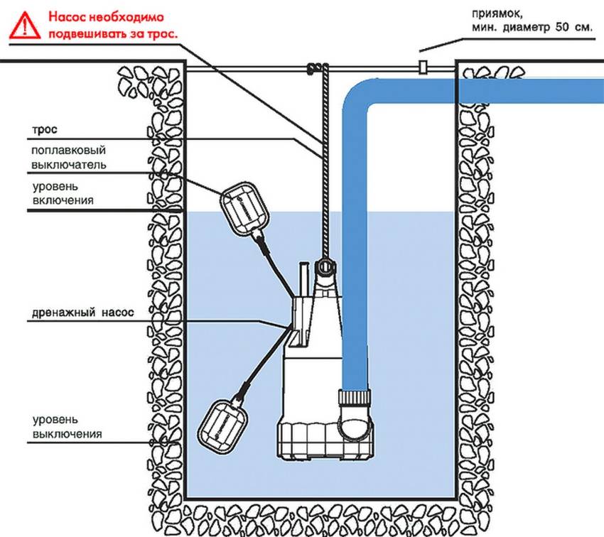 Когда требуется осушить резервуар максимально, необходим специальный дренажный насос, который монтируют на твердой поверхности. В данном случае поплавок не нужен, так как он будет начинать работу только при уровне сточных вод хотя бы в несколько см. Во всех остальных случаях с задачей справятся и обычные модели.