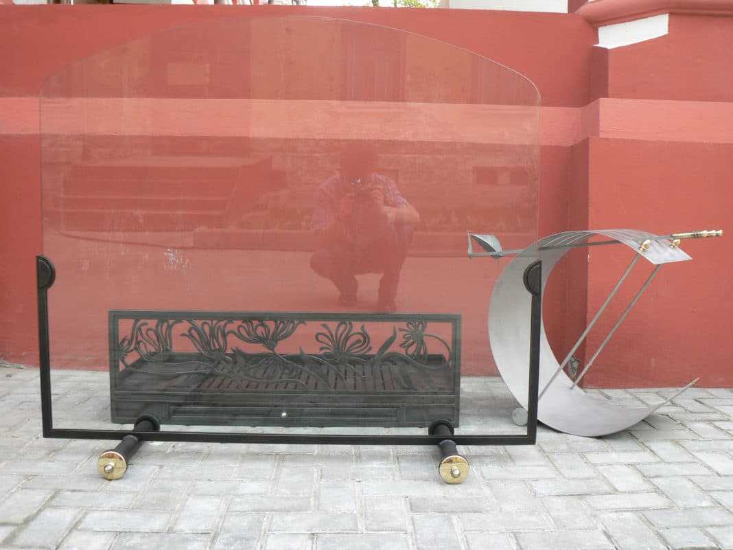 Составной разъединенный экран. Представляет собой отдельные листы, с приваренными опорами для устойчивости. Между собой они не соединяются, устанавливаются вокруг камина и защищают помещение от вылетающих раскаленных искр.
