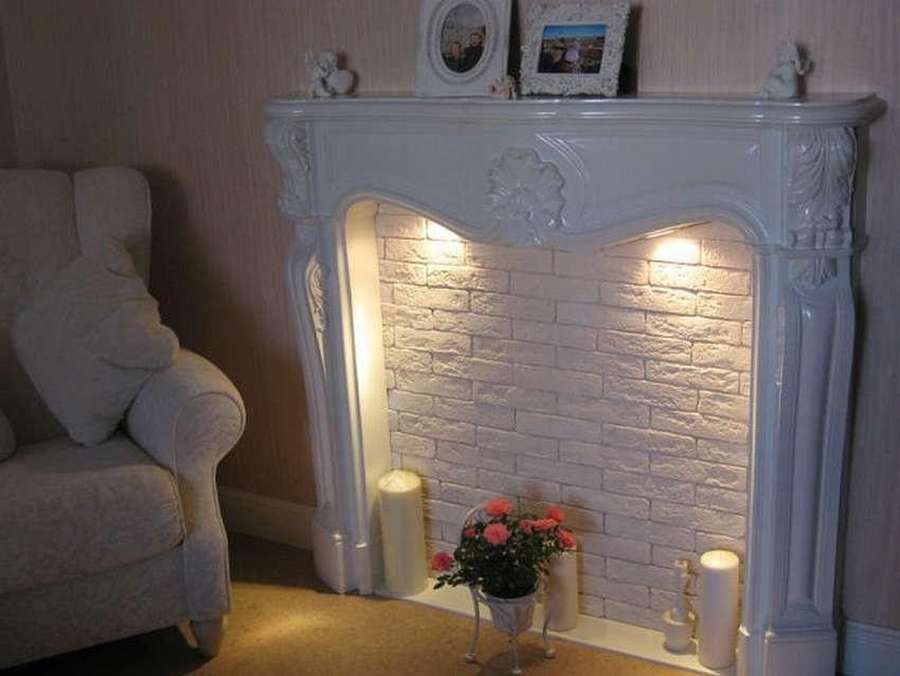 - Распространены камины, имитирующие очаг огня в кирпичной кладке или из других искусственных изделий.