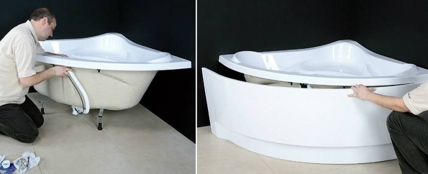 Если экран устанавливается под акриловую ванну, крепеж можно монтировать прямо на ее борта