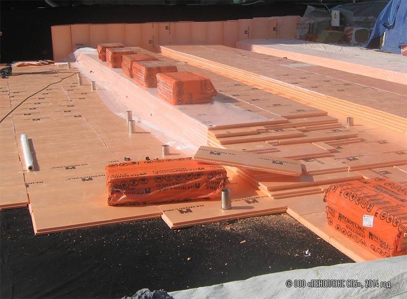 Монтаж теплоизоляции из экструдированного пенополистирола на плоскую кровлю
