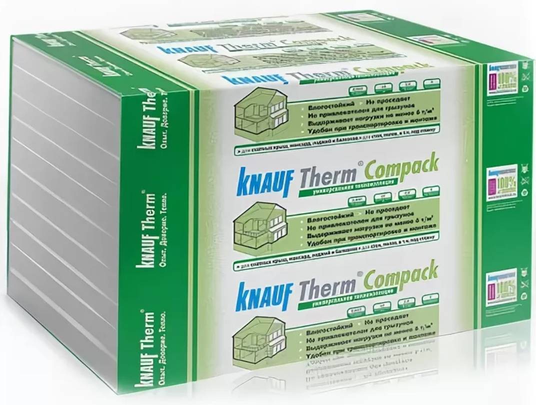 Knauf Therm Compack. Универсальный утеплитель, который подходит для бытовых и коммерческих помещений. Обладает очень низким коэффициентом теплопроводности, при этом индекс снижения воздушного шума равен 46 дБ. Отлично подходит для изоляции небольших зданий, вроде дач или гаражей.