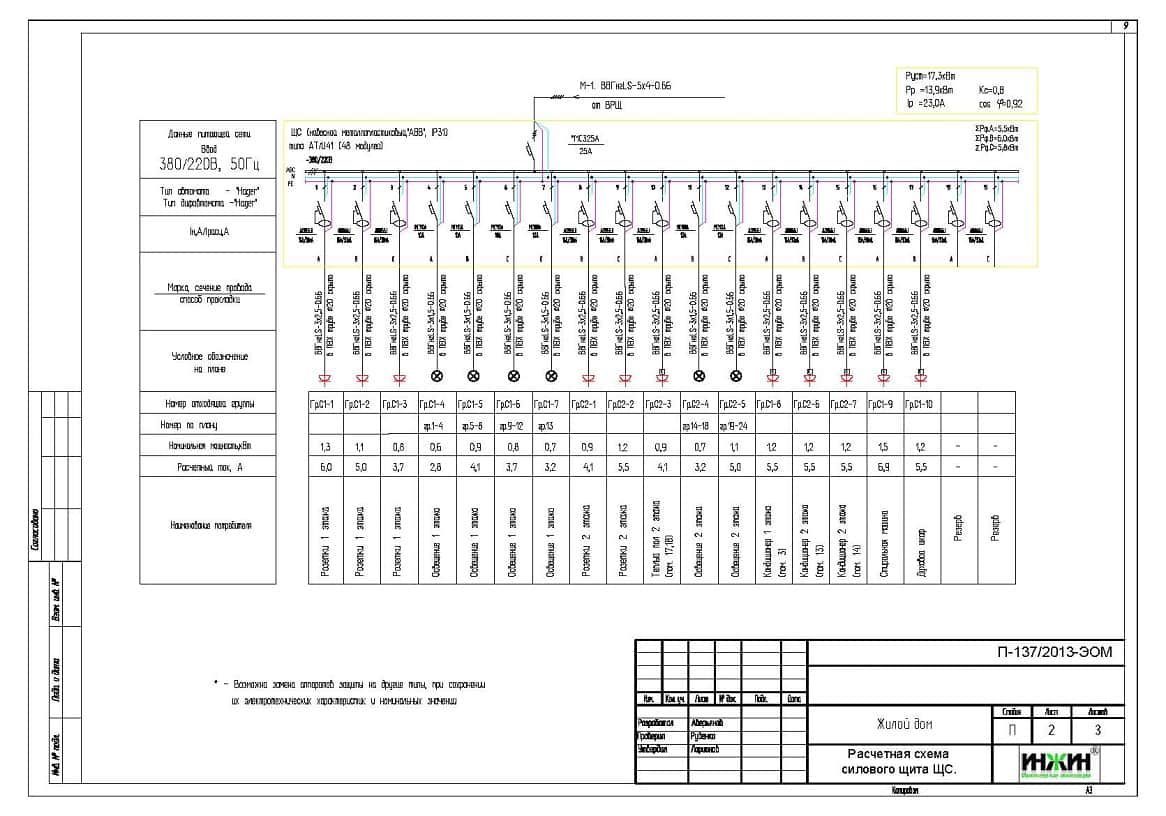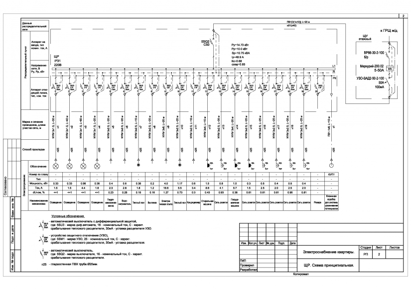 Принципиальные электрические схемы щитов распределительных и освещения с комментариями