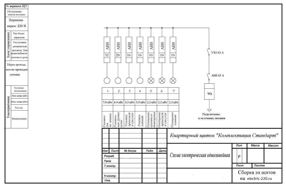 Схема электрического щита должна отвечать требованиям ГОСТа.