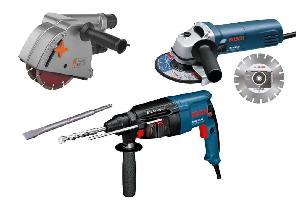 - Перфоратор и шлифмашинка с алмазным диском для изготовления штроб.