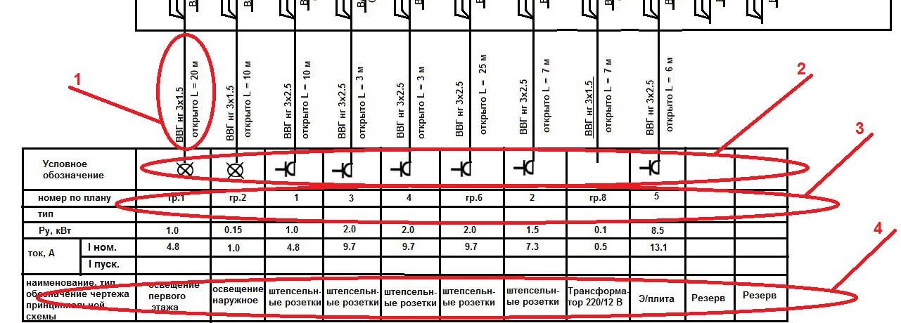 - Пояснение – что и где запитывается в каждой из групп / линий.