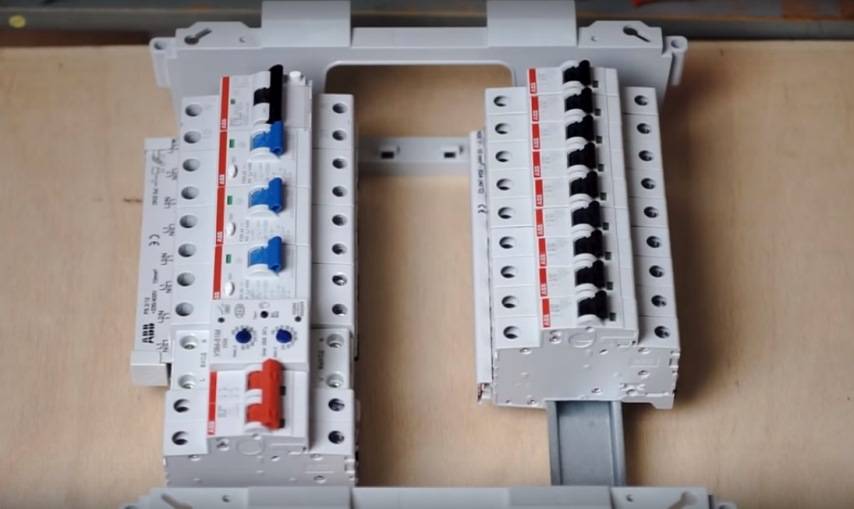 На DIN-рейке сначала фиксируют УЗО, после него — относящиеся к нему автоматы. в конце устанавливают самостоятельные автоматы и иные модульные устройства.