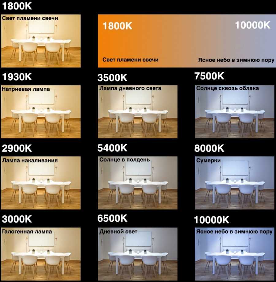 При использовании устройств с нитью накаливания получить разную цветовую температуру проблематично. С появлением энергосберегающих устройств стало возможно применять лампы белого света с различным оттенком цвета. По цветовой температуре светильники бывают:
