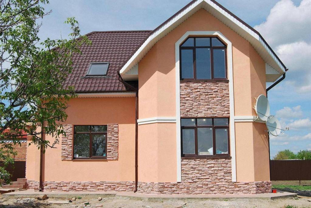 Дизайн фасада дома штукатурка и камень является оригинальным интерьерным решением, позволяющим укрепить перекрытия, скорректировать недостатки.