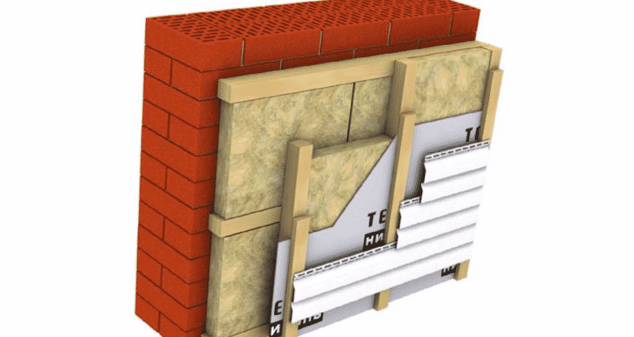 Материал для облицовки позволяет уменьшить потери тепла в жилище. Если между стеной и отделочными пластинами образуется полость, то её заполняют с помощью утеплительных материалов. При этом потребуется пенопласт или минеральная вата. Прежде чем приступить к монтажу обрешётки, прокладывается плотная плёнка из целлофана.