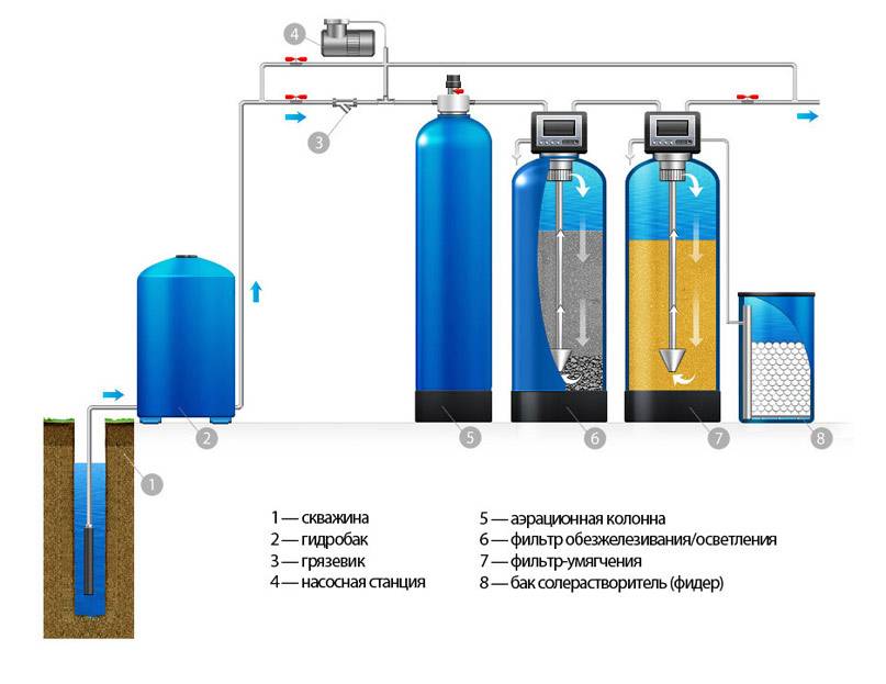 - Очищение от излишков железа, марганца, аммиака, сероводорода.