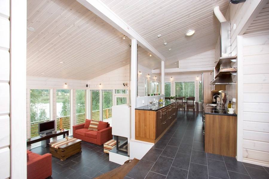 Постройка по финской технологии универсальна: нет привязки к конкретной планировке, можно постоянно менять внутреннюю архитектуру. Теплоизоляция и регулирование микроклимата не выходя из здания компенсируется низкой звукоизоляцией, которую возможно усилить отдельно.